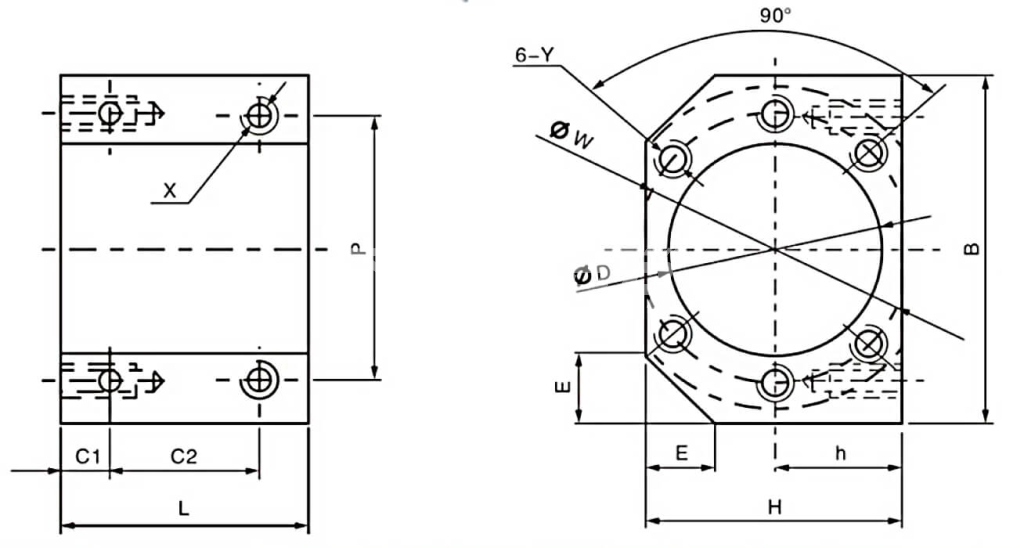 Держатель для гайки ШВП DSG1605 ISKRA является вспомогательным элементом шарико-винтовой передачи и служит для сопряжения гайки ШВП с движущимся узлом.