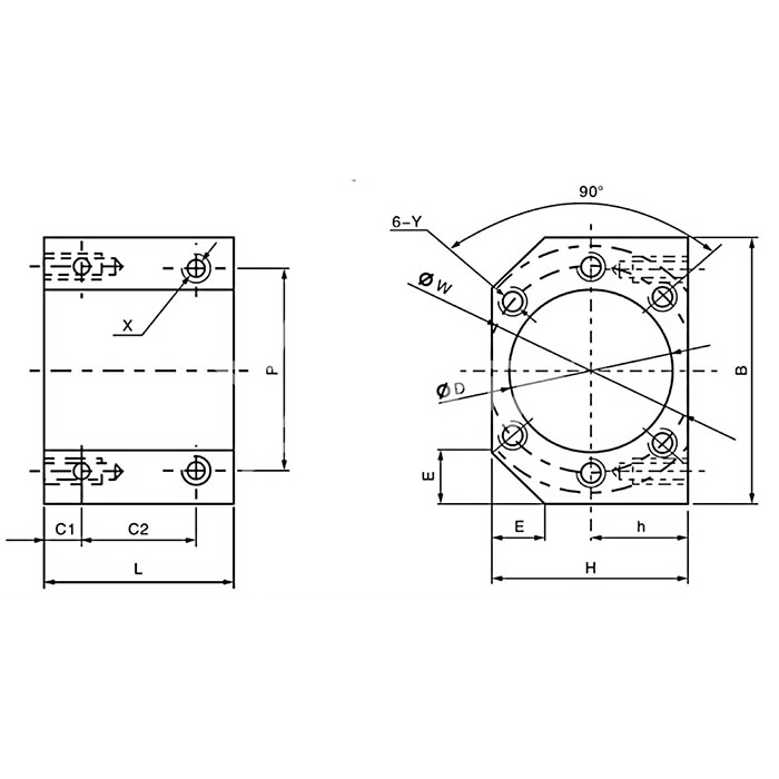 Держатель для гайки ШВП DSG2005 ISKRA является вспомогательным элементом шарико-винтовой передачи и служит для сопряжения гайки ШВП с движущимся узлом.