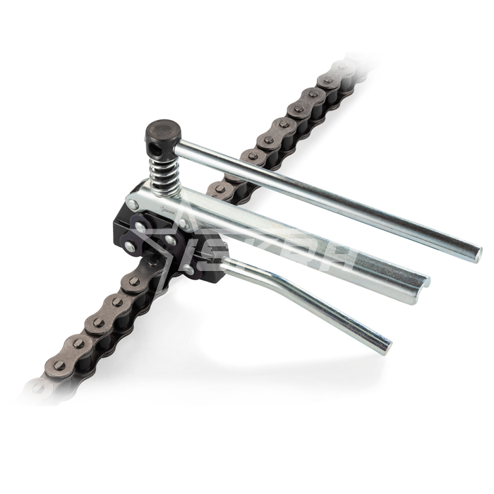 Инструмент для расклепки цепей (выжимка-экстрактор) 05B-12B / ASA ANSI 25-60 / 208-212 ISKRA применяется для расклепывания и снятия звеньев цепи. При помощи расшивателя происходит выталкивание штифта из отверстия боковой пластины. Это дает возможность извлекать звено для замены, ремонта или укорачивания цепи.