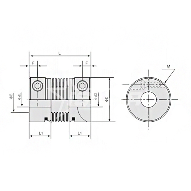 Муфта соединительная BC65-C ISKRA с корпусом из алюминиевого сплава. Сильфон изготовлен из нержавеющей стали. Принадлежит к типу виброгасящих муфт. Используется для передачи крутящего момента, путем соединения валов в механизмах.