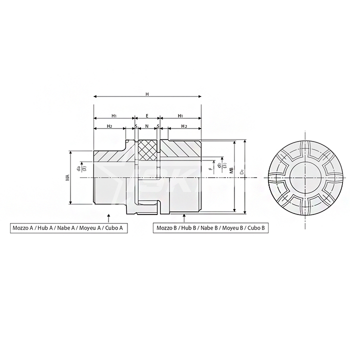 Данный тип полумуфты компенсирует несущественное смещение валов и создает эффективное гашение крутильных колебаний и передает значительный крутящий момент.