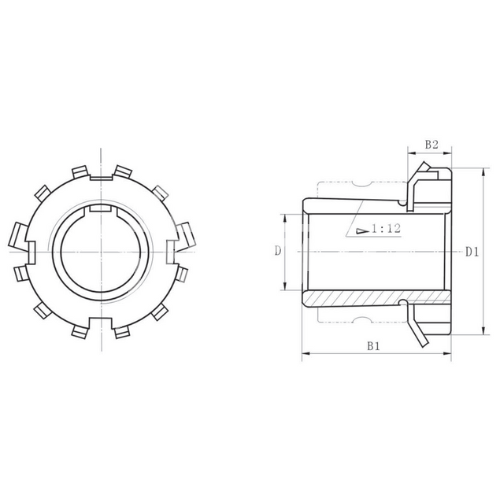 Данный типоразмер втулки применяется совместно со стопорным кольцом MB16 и стопорной гайкой KM16.